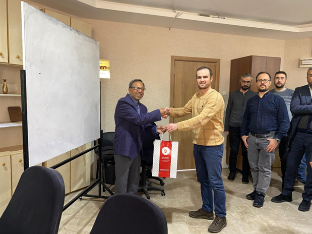 Prof. Dr. Kazi Md. Salim Newaz, faculty member of Mechanical Engineering at the University of Malaya, Malaysia, visited our Faculty of Engineering and Natural Sciences. During his visit, Prof. Newaz met with the academic staff of the Department of Mechanical Engineering and related disciplines, and delivered a seminar titled “Synthesis of Nanofluids and Their Role in Heat Energy Transfer.” Following an engaging Q&A session, the seminar concluded with the presentation of a commemorative gift as a symbol of appreciation to Prof. Dr. Newaz by Asst. Prof. Dr. Okan Demir, Co-Head of the Department.