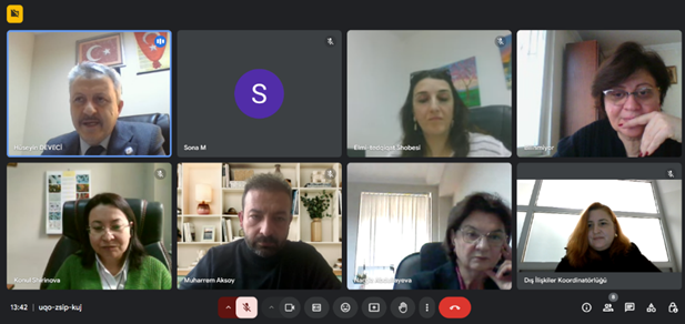 Vice Rector of Konya Technical University Prof. Dr. Hüseyin Deveci, International Relations Coordinator Assoc. Prof. Dr. Muharrem Hilmi Aksoy, and International Relations Vice Coordinator Dr. Teslime Gökgöl had an online meeting with Azerbaijan University of Architecture and Construction's Vice Rector for Scientific Affairs, Prof. Dr. Nigar Aslanova; Vice Rector for International Relations, Prof. Dr. Nergiz Abdullayeva; Scientific Research Branch Manager, Assoc. Prof. Dr. Reyhan Ekberli; and Könül Şirinova.