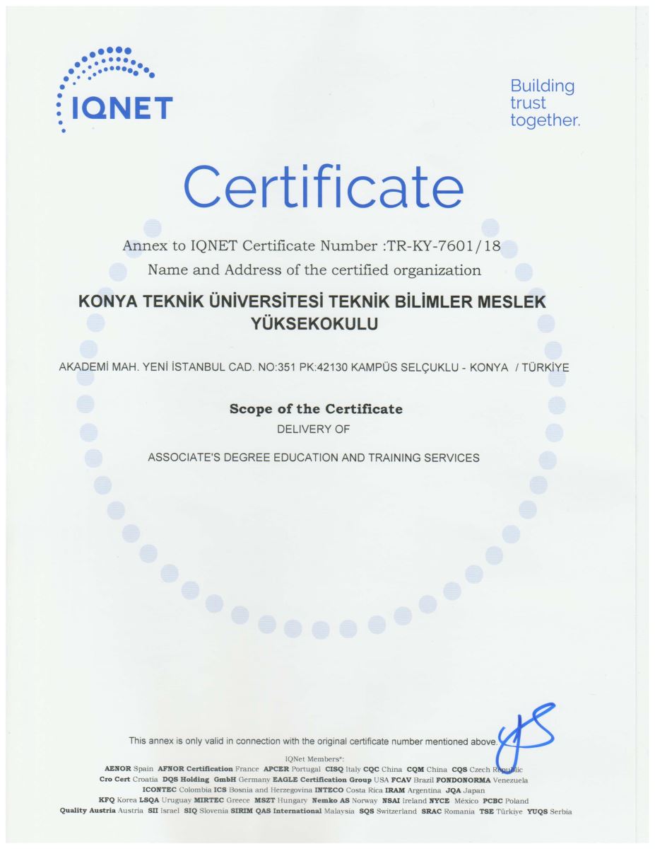 This certificate, symbolizing our determination to provide services at international standards, proves that we work with a "quality" focus in every area, from our administrative processes to our educational activities.