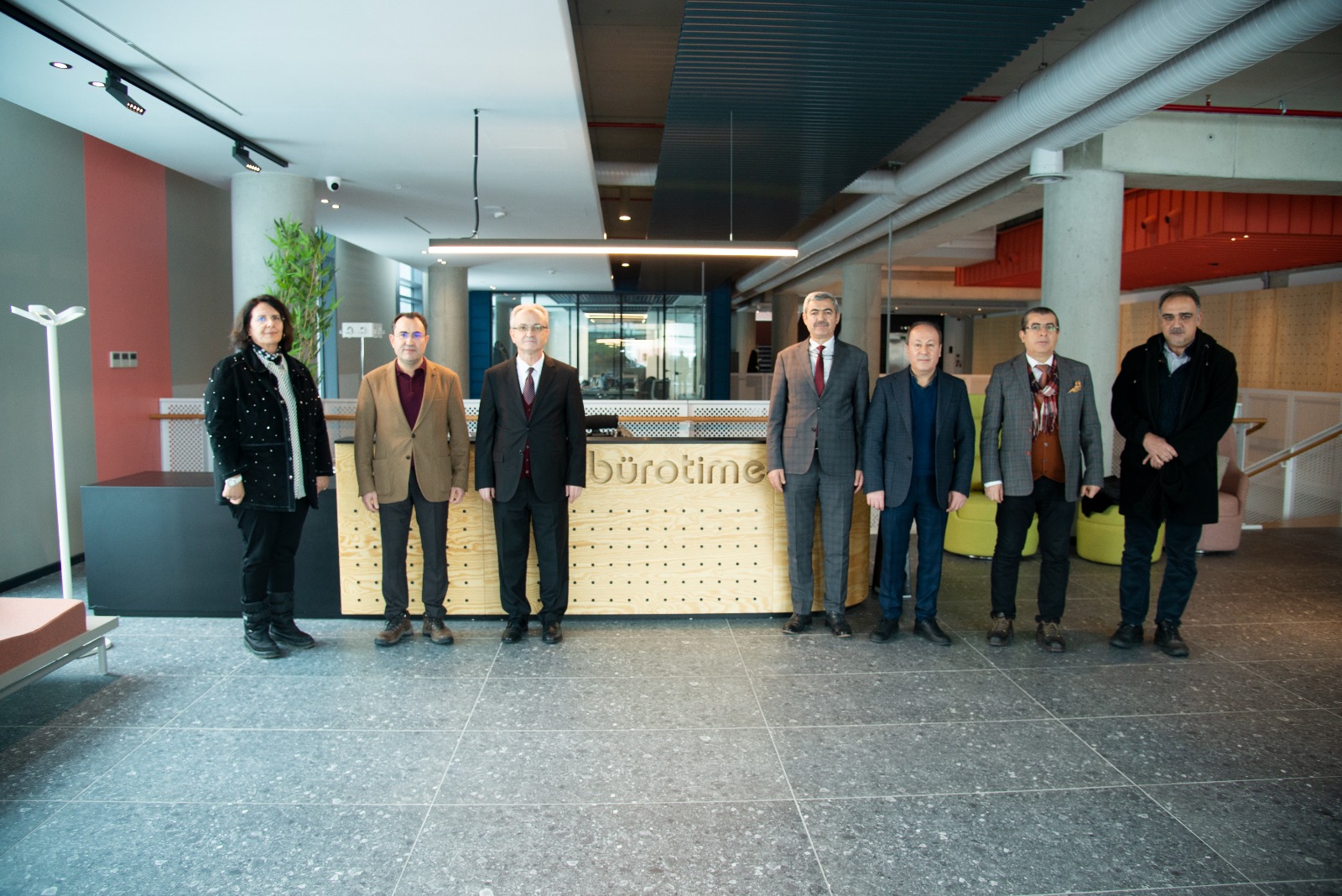 The Dean of the Faculty of Architecture and Design, Prof. Dr. Mine Ulusoy, Assistant Deans of the Faculty of Architecture and Design Assoc. Dr. Murat Oral and Assoc. Dr. Mehmet Topçu, and the lecturers of the Department of Interior Architecture, Dr. Ceyhun Şekerci and Dr. Melih Kurnalı accompanied our Rector Prof. Dr. Babür Özçelik and our Vice Rector Prof. Dr. H. Selçuk Halkacı on their visit to Bürotime.