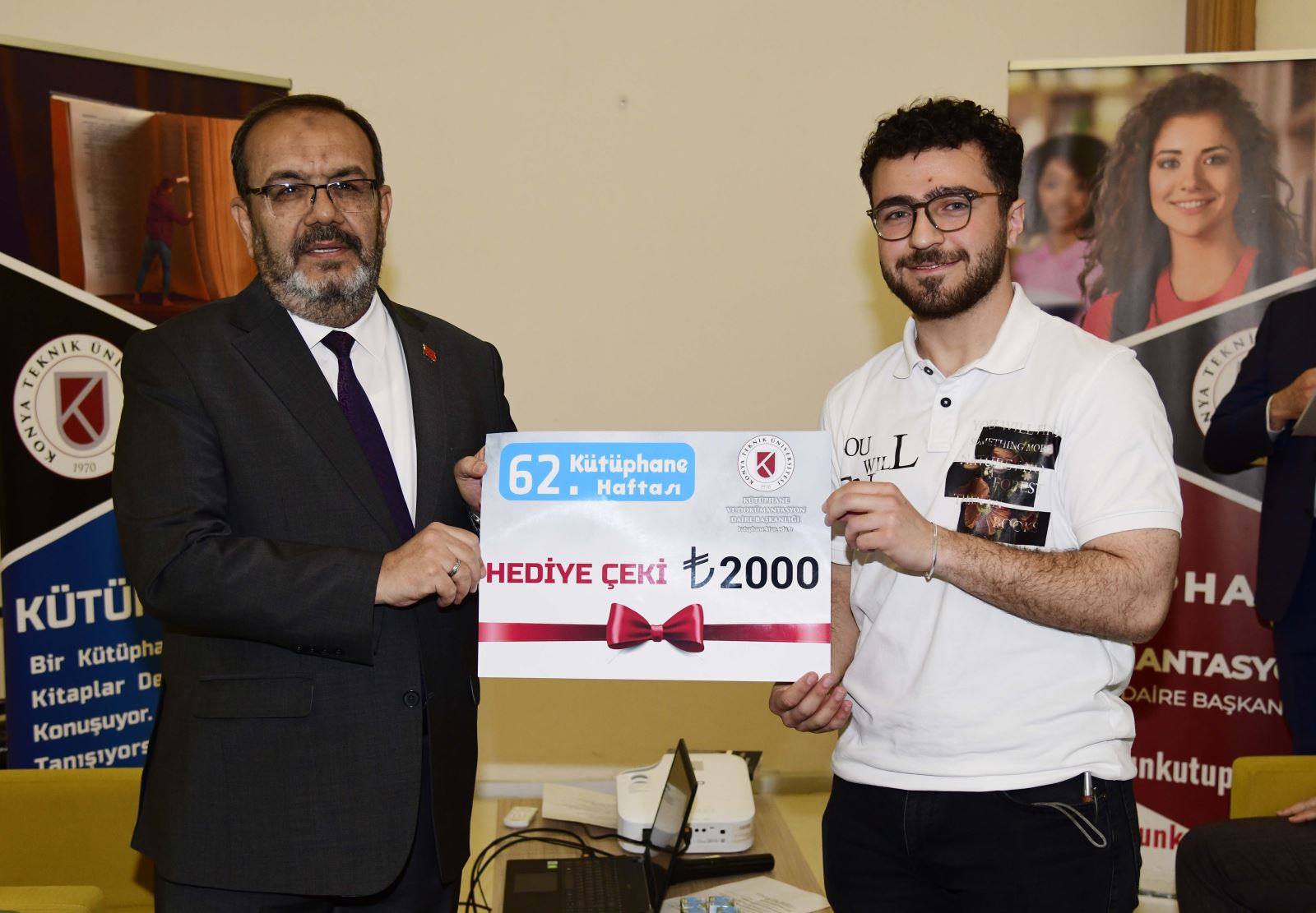 Programın devamında geleneksel ödül törenine geçildi. 2025 yılında en fazla kitap okuyan ve veri tabanlarını en etkin kullanan kütüphane kullanıcılarına ödülleri, Rektör Prof. Dr. Osman Nuri Çelik ile Rektör Yardımcısı Prof. Dr. Ali Köken tarafından takdim edildi.