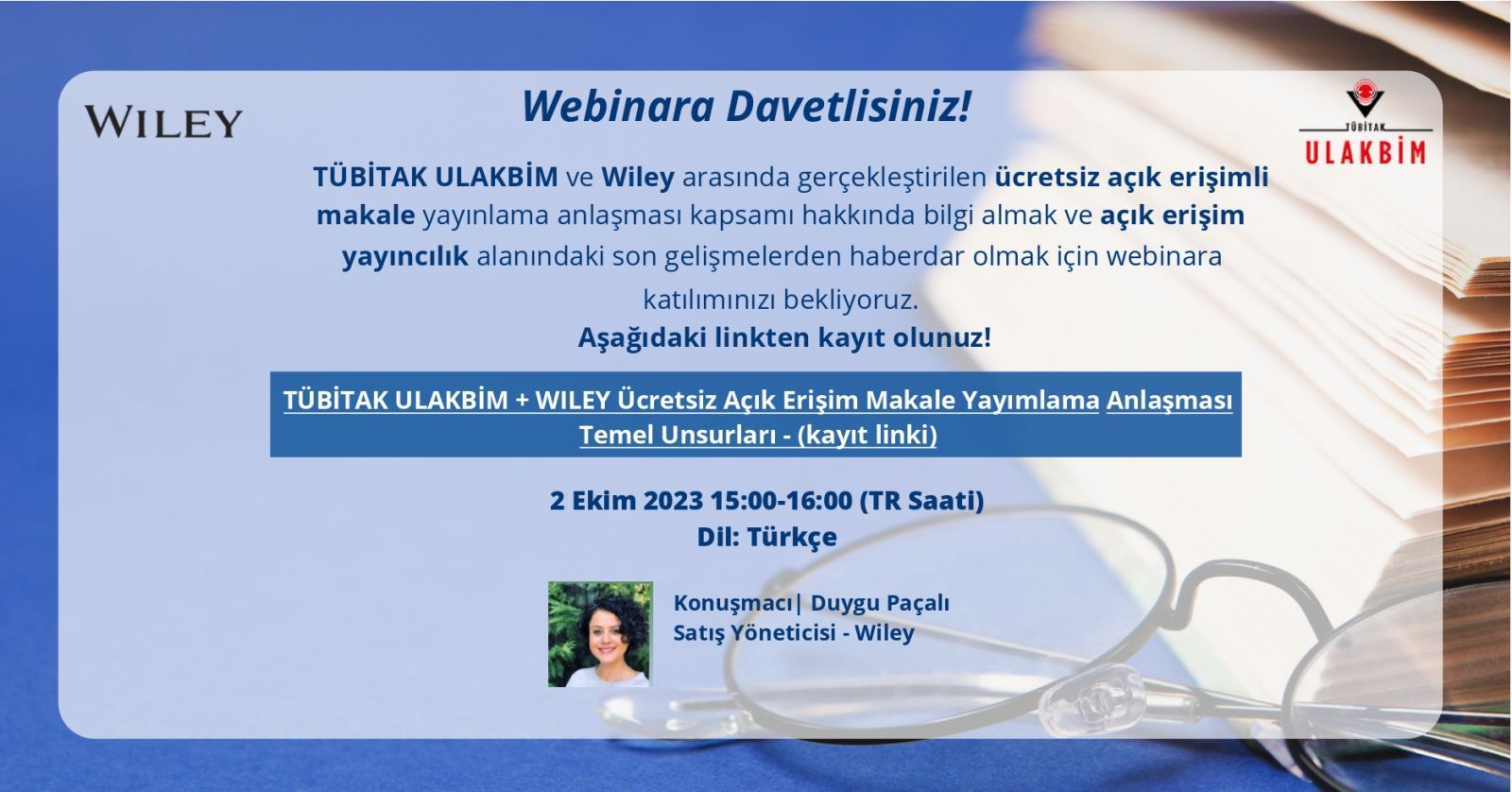 Webinar Adı: TÜBİTAK ULAKBİM + WILEY Ücretsiz Açık Erişim Makale Yayımlama Anlaşması Temel Unsurları ve Açık Erişim Yayıncılıkta Son Gelişmeler
