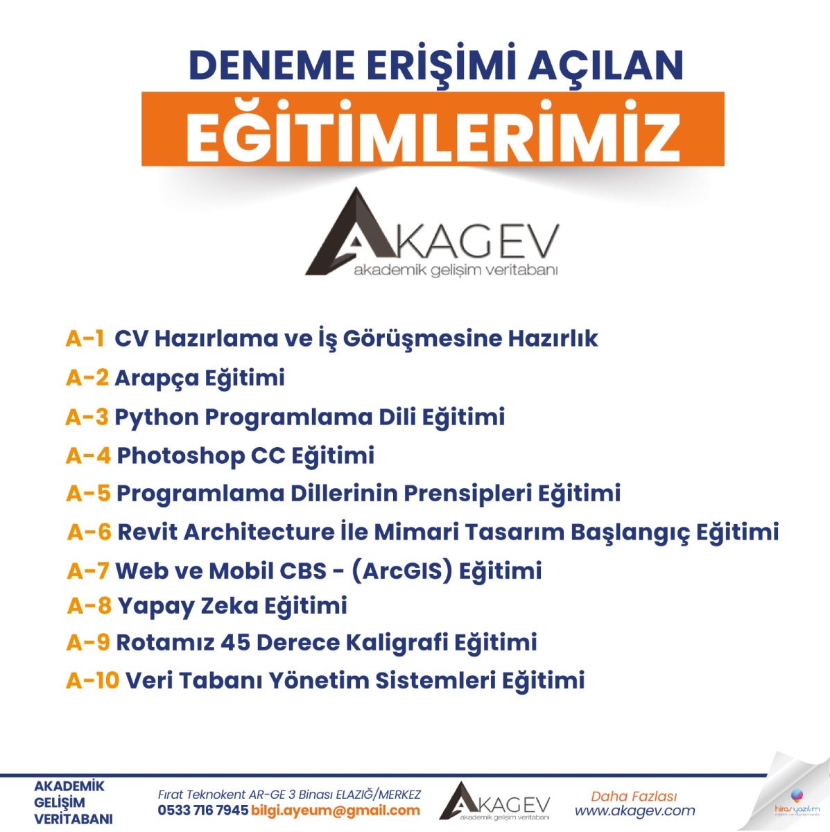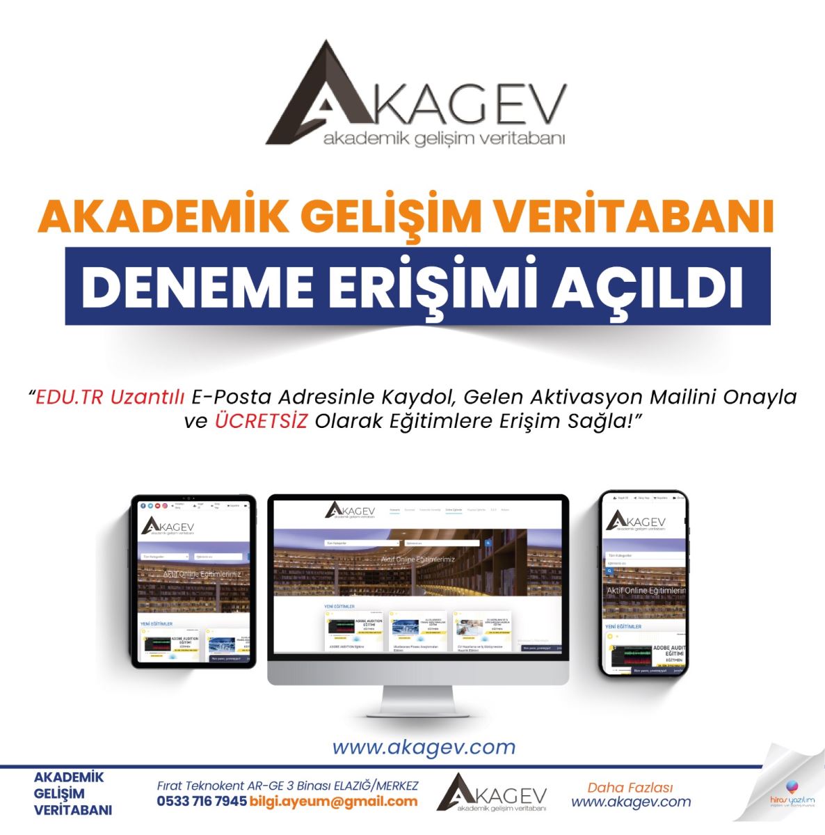 Akagev deneme erişimi 20/11/2024 tarihine kadar 10 ders aktif edilmiştir.