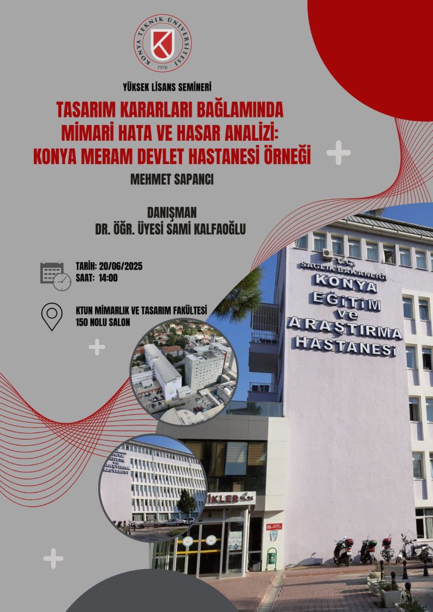 Dr. Öğr. Üyesi Sami KALFAOĞLU hocamızın lisansüstü öğrencisi Mehmet Sapancı’nın yüksek lisans seminer sunumu 20 Haziran cuma günü saat 14.00’te 150 nolu sınıfta gerçekleştirilecektir. KTÜN Mimarlık