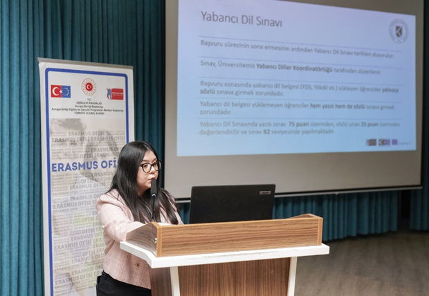 Toplantı, Erasmus+ Koordinatörlüğü Giden Öğrenci Sorumlusu Hilal Yayla’nın sunumuyla devam etti. Erasmus+ Programı kuralları ve sürecin genel işleyişi hakkında önemli bilgilerin yer aldığı sunumun ardından soru-cevap bölümüne geçilerek öğrencilerden gelen soruların yanıtlanmasıyla toplantı sona erdi.