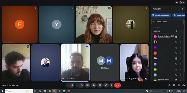 17 Şubat 2026 tarihinde saat 13.00’te düzenlenen çevrim içi toplantıda Erasmus+ Kurum Koordinatörü Doç. Dr. Muharrem Hilmi Aksoy öğrencilere süreçle ilgili değerli tavsiyelerde bulunurken Erasmus+ Koordinatörlüğü Giden Öğrenci Sorumlusu Hilal Yayla, Erasmus+ Programının işleyişi hakkında bilgiler vererek yurt dışındaki staj faaliyeti esnasında dikkat edilmesi gereken hususları ele aldı. Öğrencilerin sorularının yanıtlandığı bölümün ardından toplantı sona erdi.