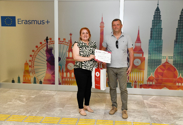 Erasmus+ Programı KA171 Projesi kapsamında Ukrayna’da yer alan Zhytomyr Polytechnic State University Maden Mühendisliği Bölümü mensubu iki akademik personel üniversitemizde eğitim alma hareketliliği gerçekleştirdi. 23-27 Haziran 2025 tarihlerinde gerçekleşen hareketlilikte düzenlenen teknik geziler ve laboratuvar faaliyetlerinin oldukça faydalı olduğunu belirten misafirlerimiz ziyaretleri sonunda Koordinatörlüğümüze gelerek katılım sertifikaları ve hediyelerini Erasmus+ Kurum Koordinatör Yardımcısı Öğr. Gör. Dr. Teslime GÖKGÖL’den teslim aldılar.