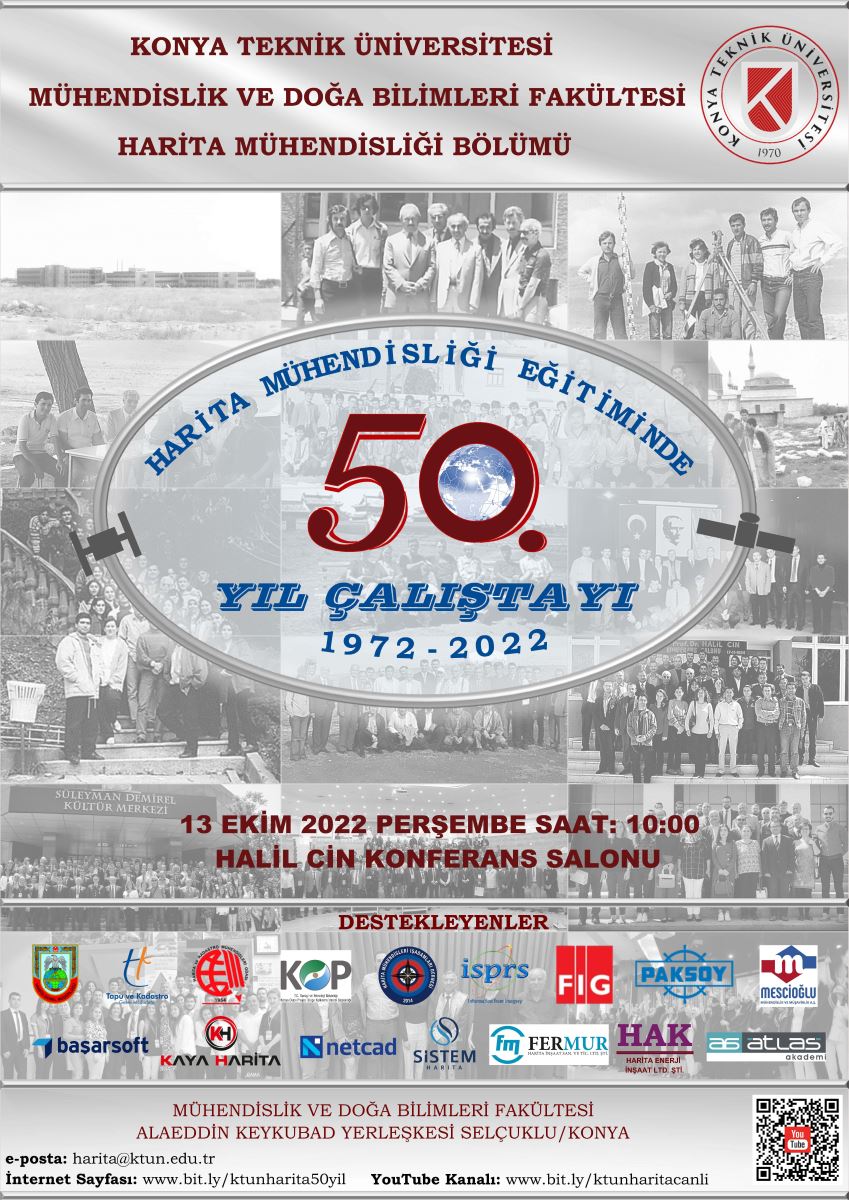 Konya Teknik Üniversitesi Mühendislik ve Doğa Bilimleri Fakültesi Harita Mühendisliği Bölümü olarak kuruluşumuzun 50. yılı anısına düzenlediğimiz çalıştayımız ile bilgilerin yer aldığı web sayfasına hoş geldiniz.