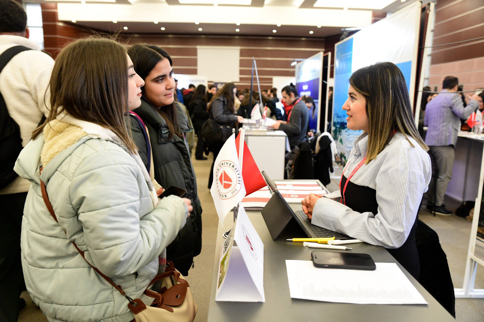 Türkiye’nin birçok şehrinde düzenlenen fuarlarda bu yıl Eskişehir, Ankara ve Konya olmak üzere aday öğrencilerle bir araya gelinen fuarlarda öğrenciler, üniversitemiz yetkilileriyle yüz yüze görüşme imkânı buldu. Öğrenciler, Üniversitemizin bölümleri, yurt dışı imkânları, çift ana dal, yan dal, yatay ve dikey geçiş, burs olanakları, taban puanlar, tercih ve sıralama ile ilgili her konuda detaylı bilgi aldı.
