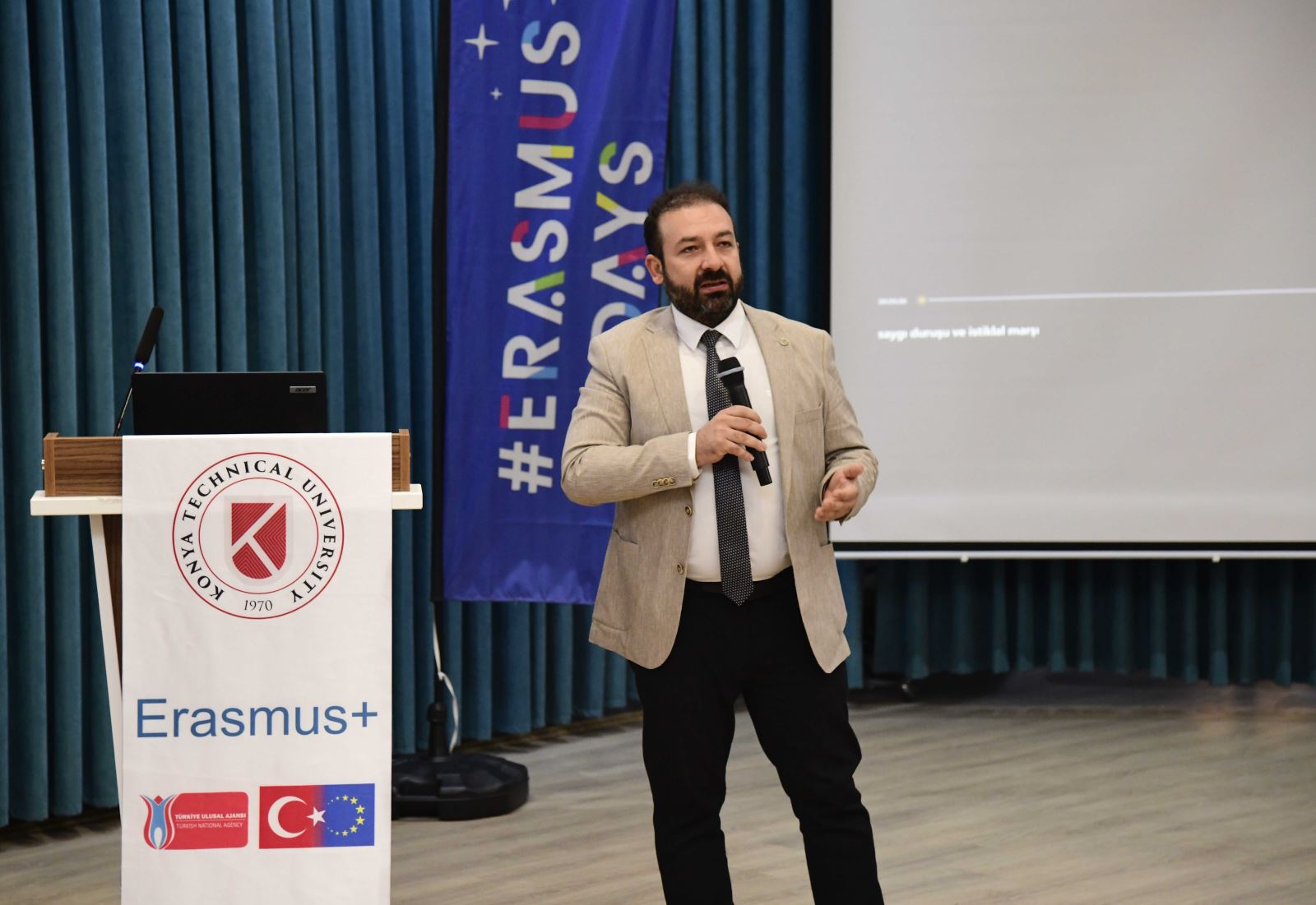 Etkinlikte, KTÜN Kariyer Merkezi temsilcisi Öğr. Gör. Zeynep Önder kariyer planlama hizmetlerini tanıtırken, Konya Büyükşehir Belediyesi-Atmosfer Bosna Gençlik Merkezi temsilcisi Murat Can Bulaş, Eurodesk hakkında öğrencilere bilgi verdi.