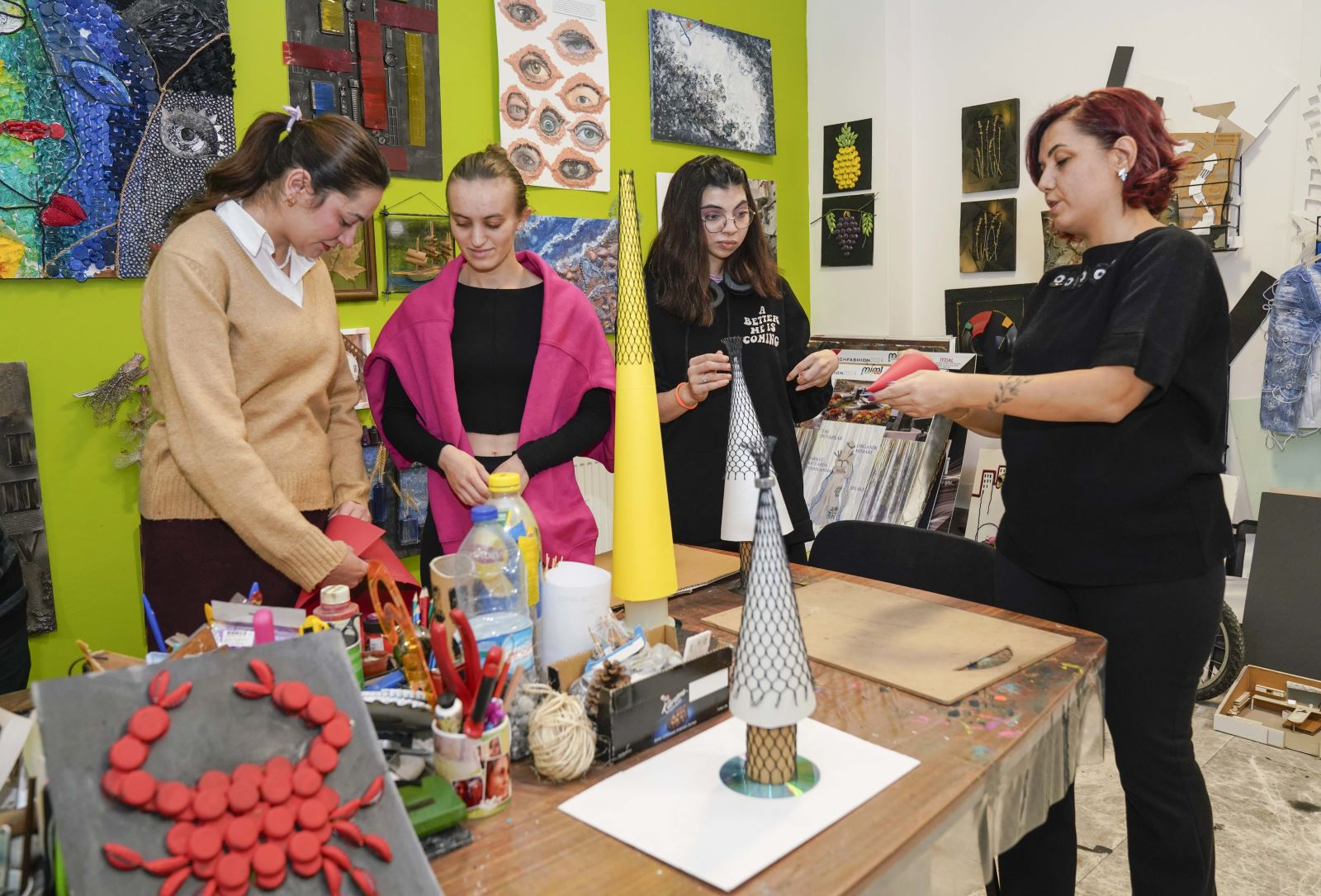Gün boyu süren etkinlik sonrasında, atık malzemeler el emeği ürünlere dönüşerek yepyeni ve birbirinden değerli tasarımlara dönüştü. Gelişim Yerleşkesi fuaye alanında yapılan sergi hafta boyunca gezilebilecek.