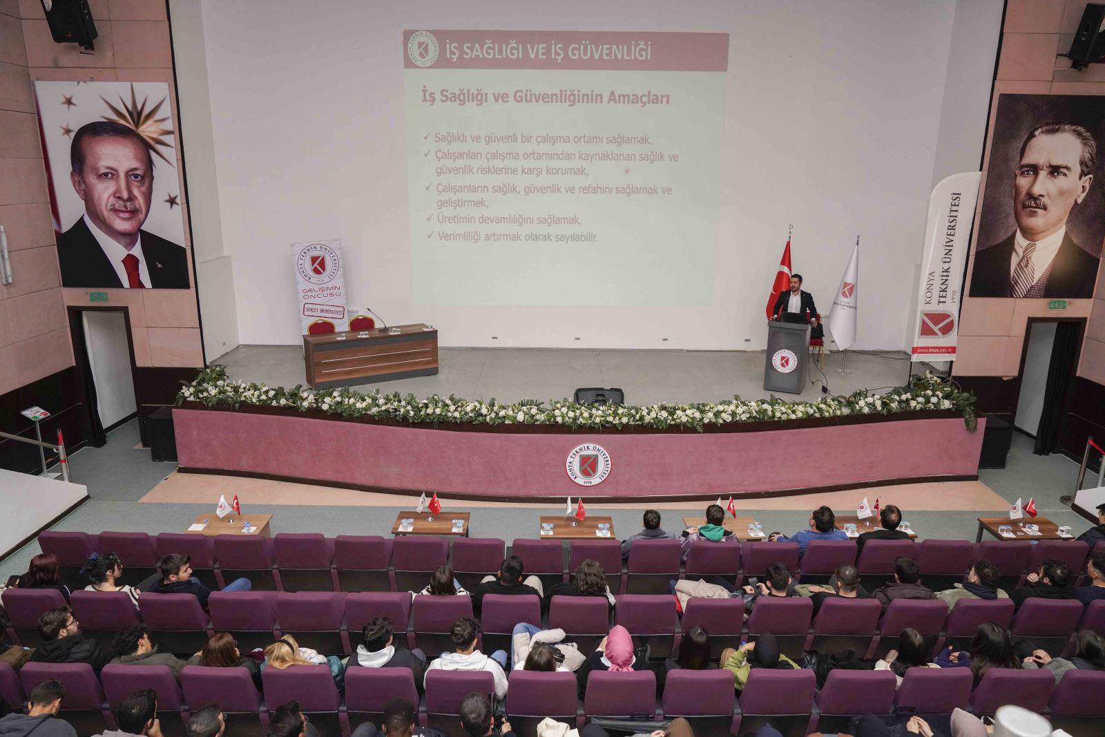 Eğitimde öğrencilerin öğrenim hayatları boyunca, bölümlerinde gerçekleşebilecek olası tehlike ve risklere karşı ne yapmaları gerektiği, iş sağlığı ve güvenliği prensiplerini uygulayarak korunma yolları anlatıldı.