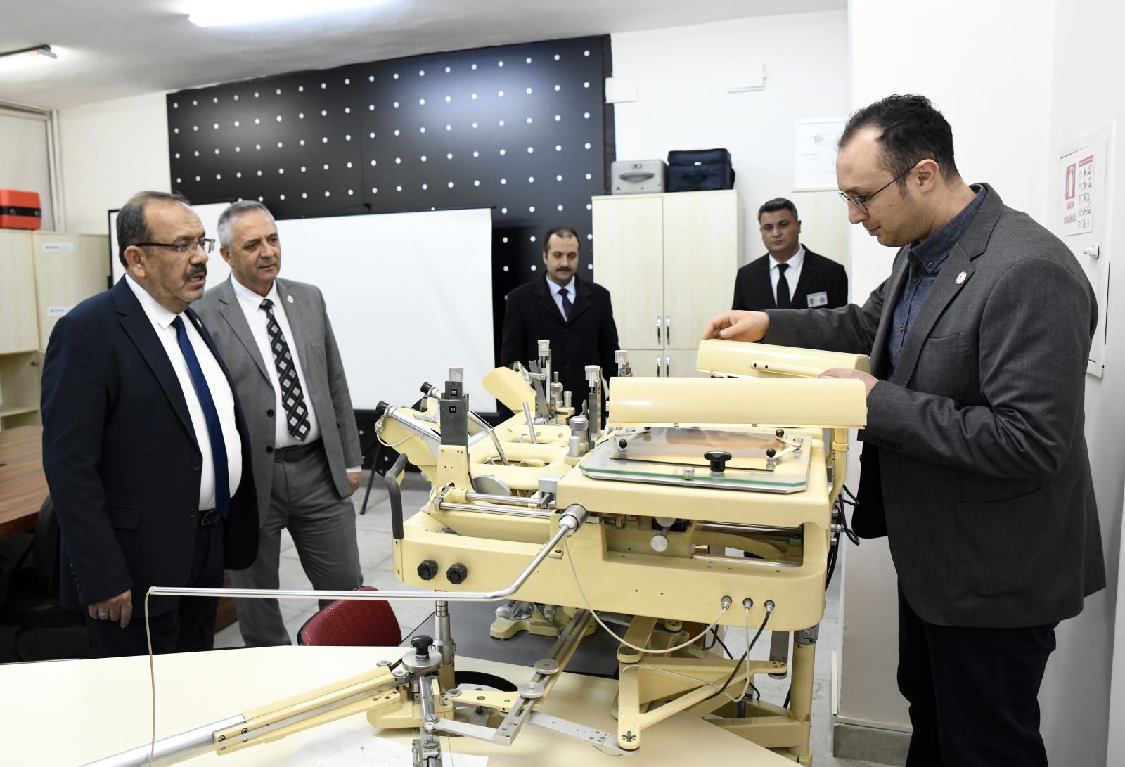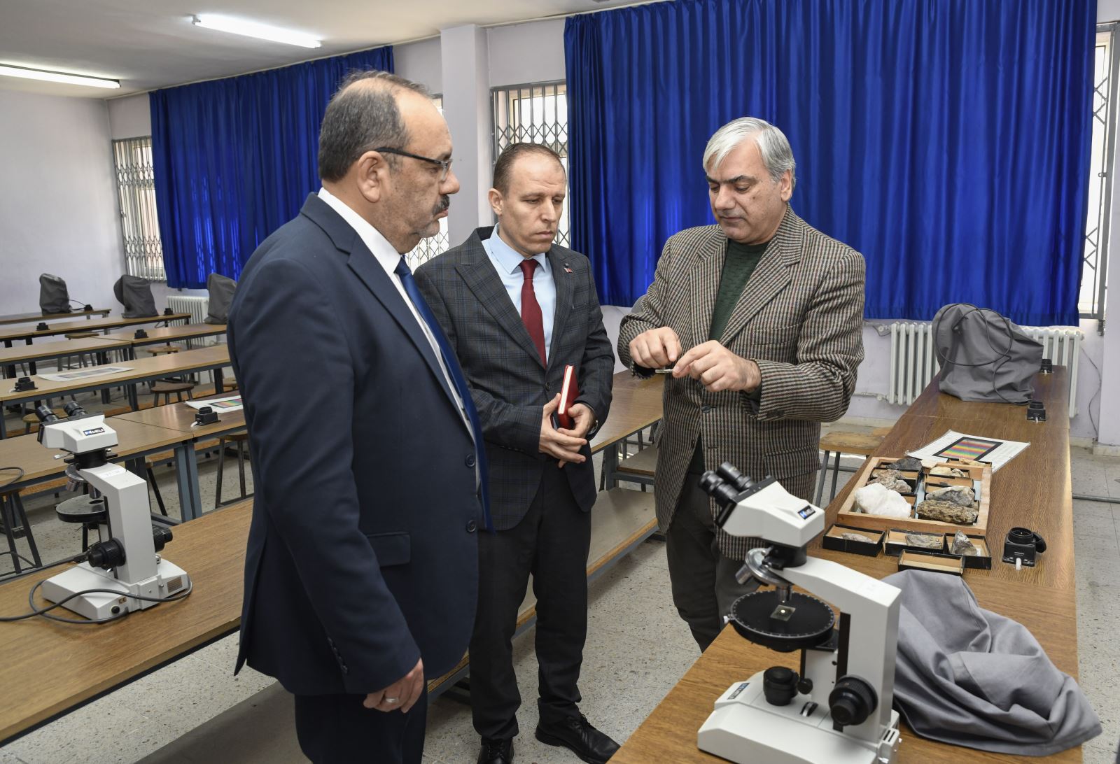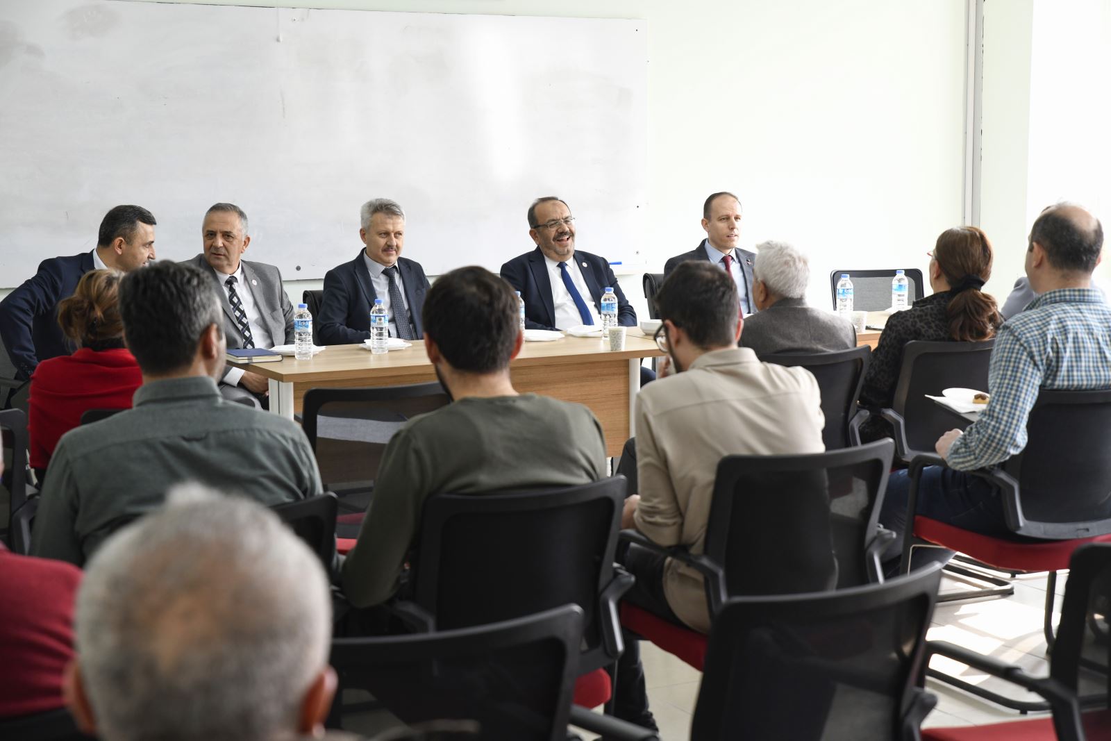 Buradaki temasların ardından inceleme ve ziyaretlerine Jeoloji Mühendisliği ile İnşaat Mühendisliği ve Harita Mühendisliği bölümleriyle devam eden Rektör Çelik ve beraberindekiler burada da bölüm personelleri ile toplantı gerçekleştirdi.