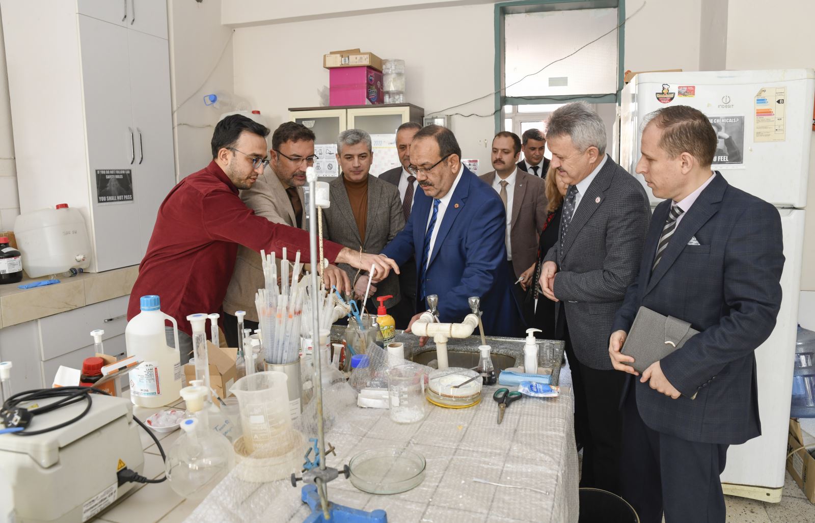 Ziyaretlerine ilk olarak Mühendislik ve Doğa Bilimleri Fakültesi’nden başlayan Rektör Çelik, burada Kimya Mühendisliği, Elektrik-Elektronik Mühendisliği, Çevre Mühendisliği ve Makine Mühendisliği Bölümleri öğretim üyeleri ve idari personel ile bir araya geldi. Bölüm hocalarıyla yürütülen projeler ve işleyişle ilgili bilgiler alan Rektörümüz, daha sonra bölümlere ait laboratuvarları inceledi ve çalışmaları yerinde gördü.