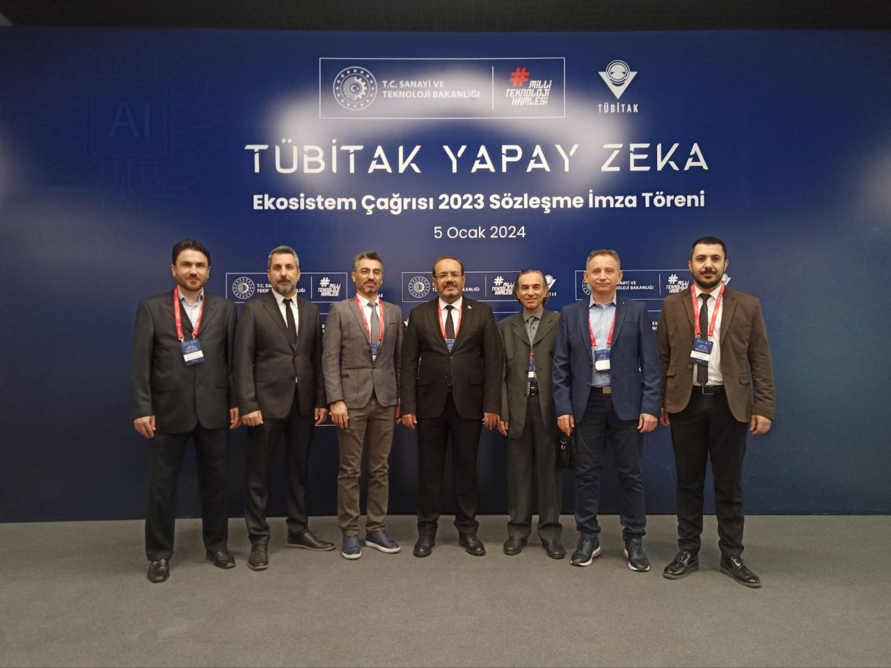 TÜBİTAK 2023 Yapay Zekâ Ekosistem Çağrısı Sözleşme İmza Töreni, TÜBİTAK Gebze Yerleşkesinde bulunan Marmara Teknokent’te gerçekleştirildi. Sanayi ve Teknoloji Bakanı Mehmet Fatih Kacır’ın katılımlarıyla düzenlenen törende, Rektörümüz Prof. Dr. Osman Nuri Çelik, TÜBİTAK Başkanı Prof. Dr. Hasan Mandal ve projenin taraflarıyla birlikte Üniversitemiz adına sözleşmeyi imzaladı.