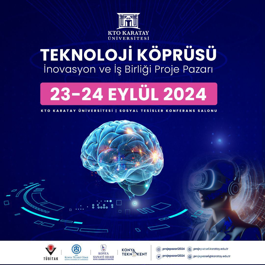 The “Technology Bridge: Innovation and Collaboration Project Market” event, organized in cooperation with the Konya Chamber of Commerce, Konya Chamber of Industry, KTO Karatay University, and Konya Teknokent and supported by TÜBİTAK TEYDEB 1503 - Project Market Support Program, will be held at KTO Karatay University on 23-24 September 2024.