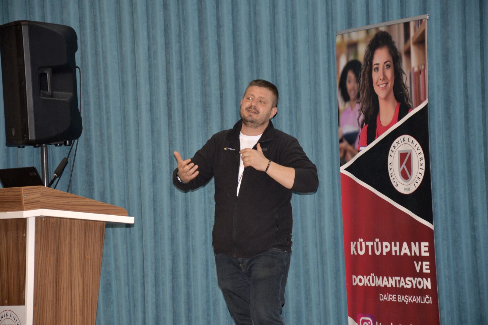 Prof. Dr. Halil Cin Konferans Salonunda gerçekleşen etkinlikte Uysal, kariyer yolculuğunu, teknolokji sektöründeki deneyimlerini ve gençlere yönelik tavsiyelerini paylaşarak öğrencilerimize ilham dolu konuşma yaptı.