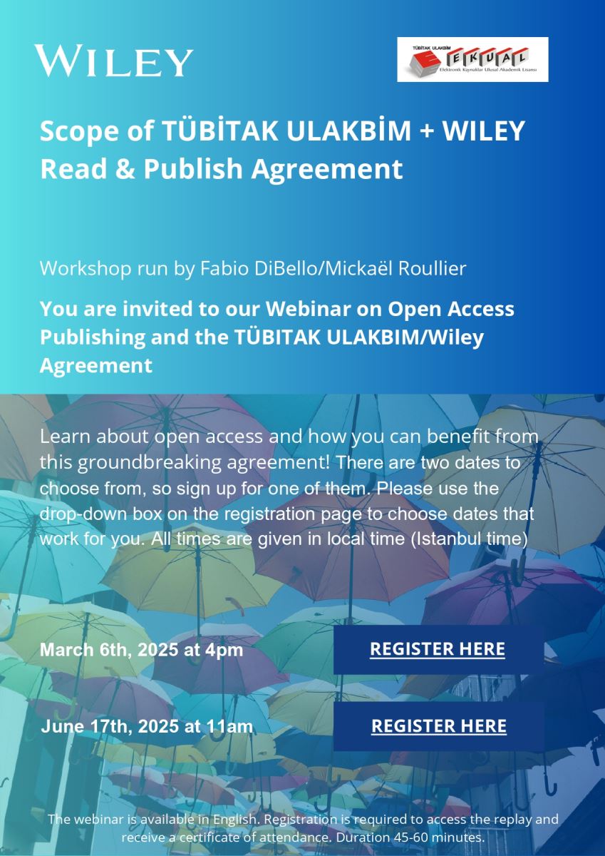 TÜBİTAK ULAKBİM + WILEY Ücretsiz Açık Erişim Makale Yayımlama Anlaşması Kapsamı |