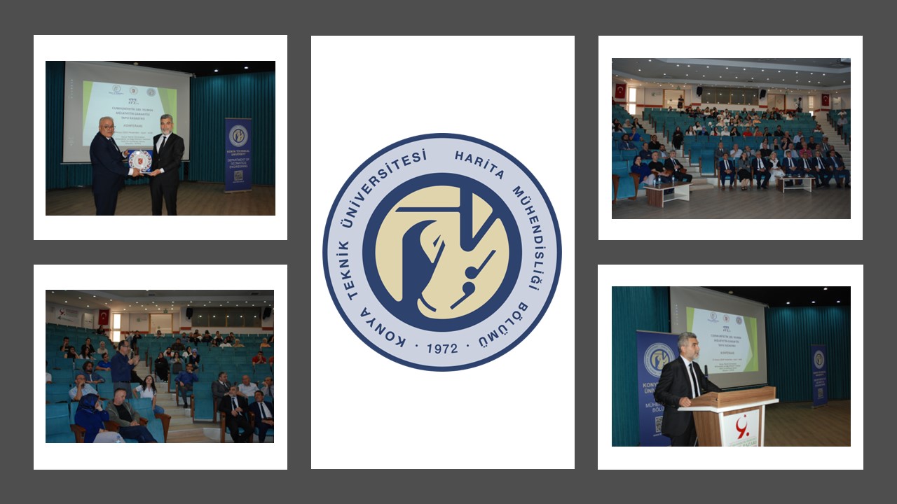 23 Mayıs 2024 tarihinde Konya Teknik Üniversitesi Mühendislik ve Doğa Bilimleri Fakültesi Halil Cin Konferans Salonu'nda Harita Mühendisliği Bölümü ve Tapu Kadastro Genel Müdürlüğü işbirliğiyle "CUMHURİYETİN 100. YILINDA MÜLKİYETİN GARANTİSİ TAPU KADASTRO" Konferansı gerçekleştirilmiştir.