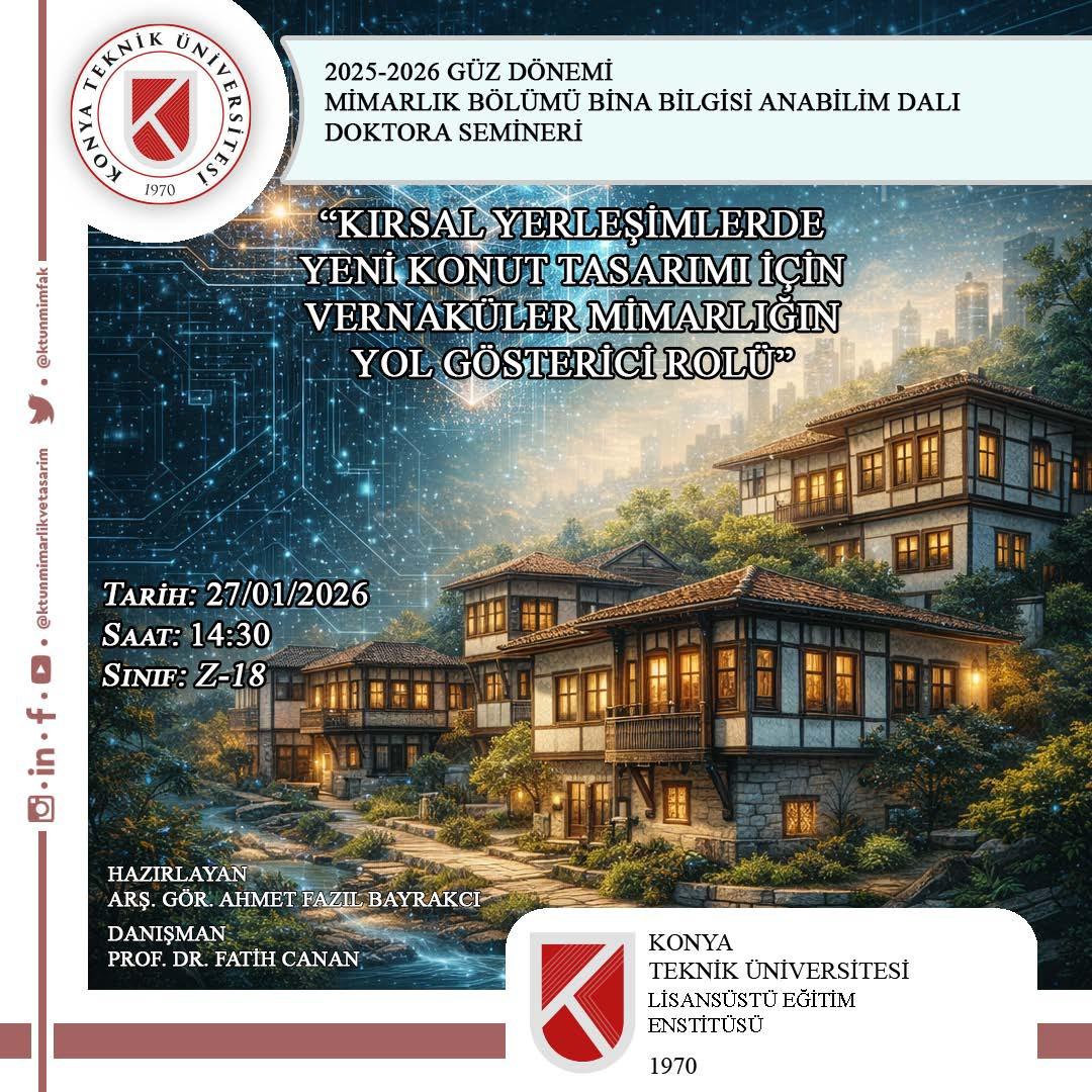 Prof. Dr. Fatih CANAN hocamızın lisansüstü öğrencisi Ahmet Fazıl Bayrakcı'nın doktora seminer sunumu 27 Ocak salı günü saat 14.30’da Z18 nolu sınıfta gerçekleştirilecektir. Katılımınızı bekleriz.