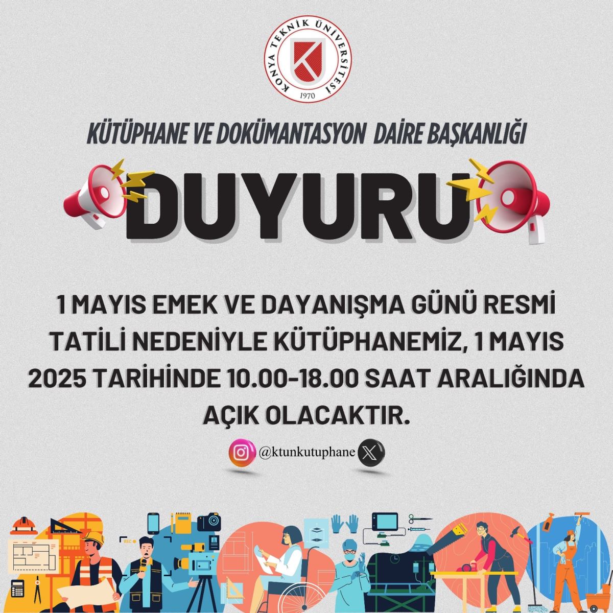 Kütüphane Resmi Tatil Çalışma Saatleri Hk.