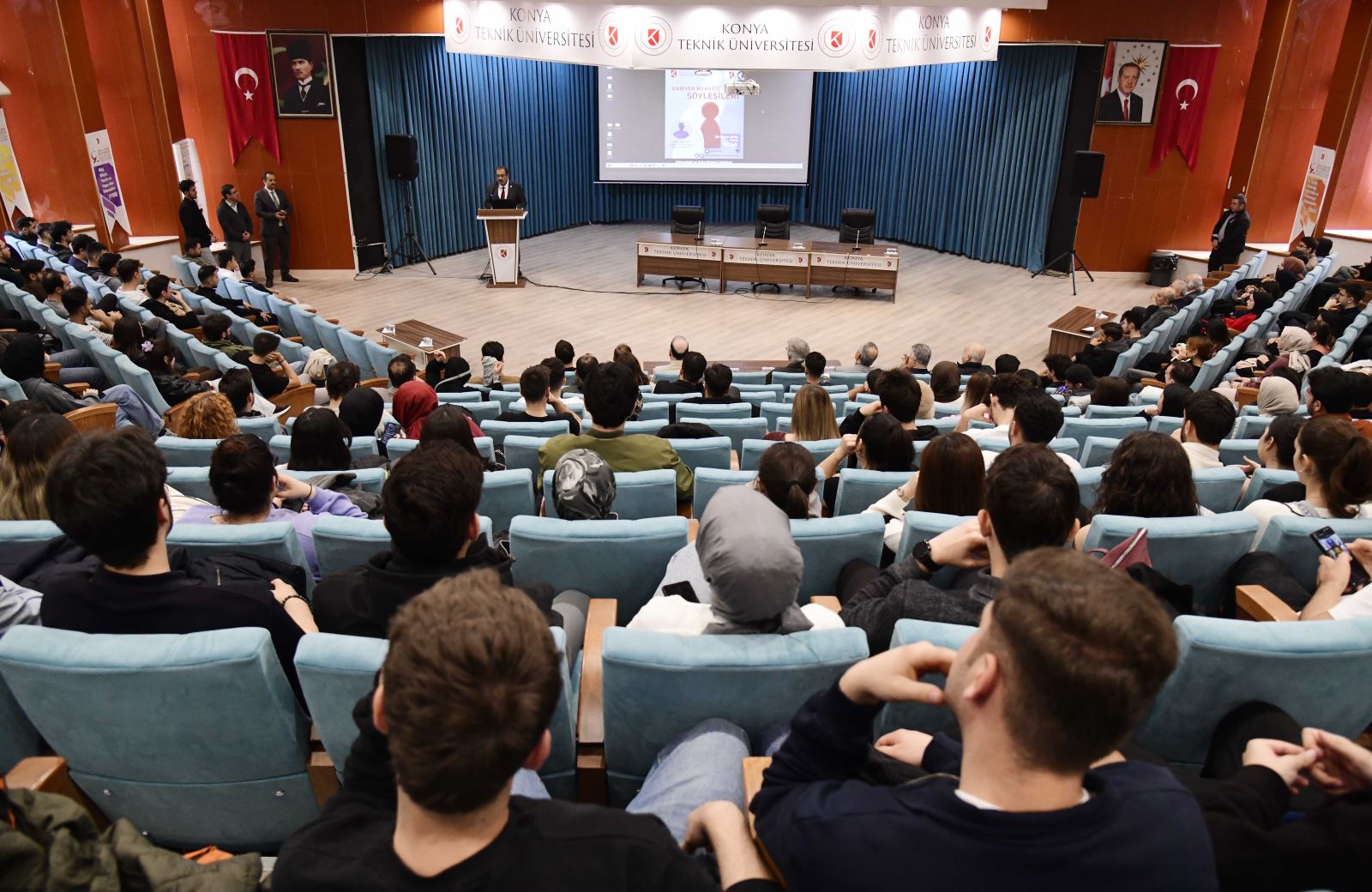 Erol Balevi, etkinlikte, Rektörümüz Prof. Dr. Osman Nuri Çelik ile birlikte öğrencilerden gelen soruları yanıtladı.