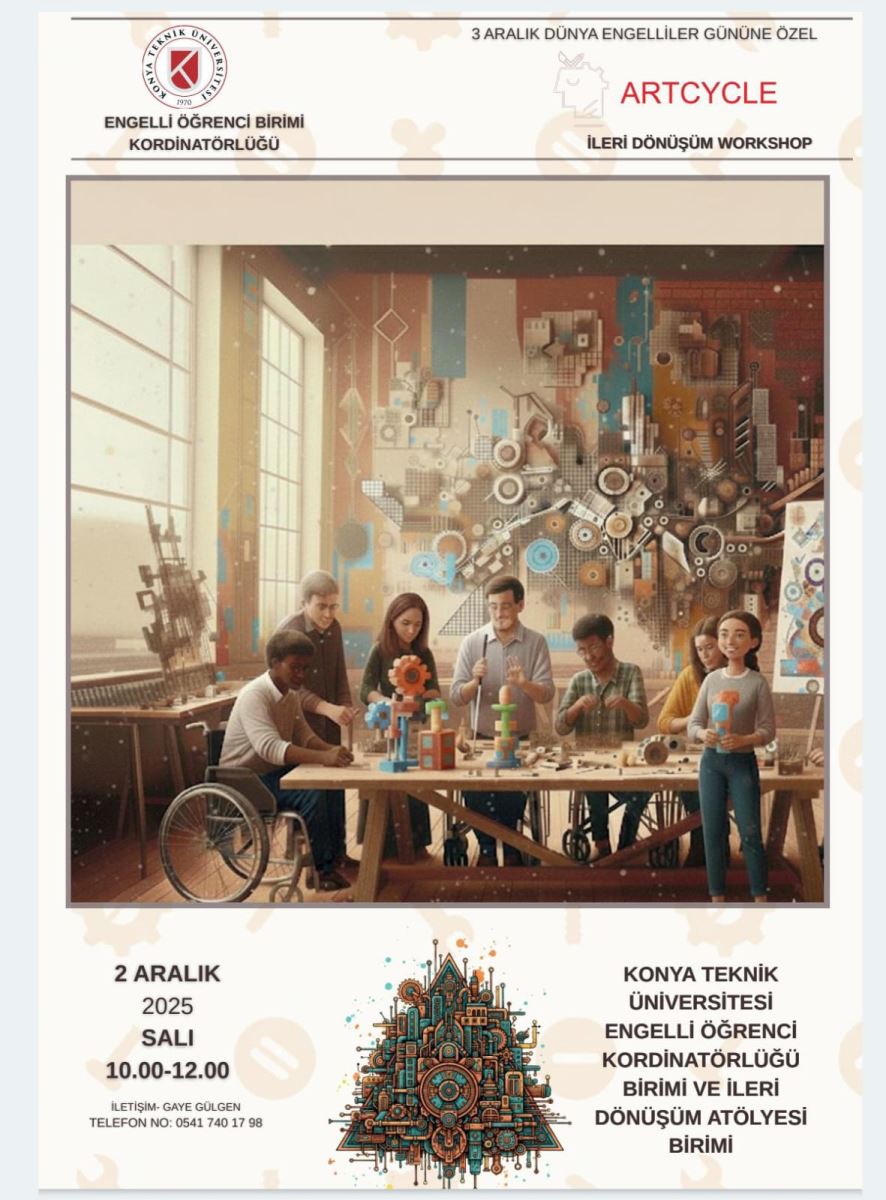 Engelli Öğrenci Koordinatörlüğü ve İleri Dönüşüm Atölyesi Biriminin düzenlediği, yürütücülüğünü Prof. Dr. Bilgehan Yılmaz hocamızın üstlendiği "Parçadan Bütüne" İleri Dönüşüm Etkinliği 2 Aralık Salı günü saat 10.00-12.00 arası Gelişim Yerleşkesi İleri Dönüşüm Atölyesinde gerçekleştirilecektir. Katılmak isteyen öğrencilerimizin Gaye Gülgen ile iletişime geçmesi gerekmektedir.