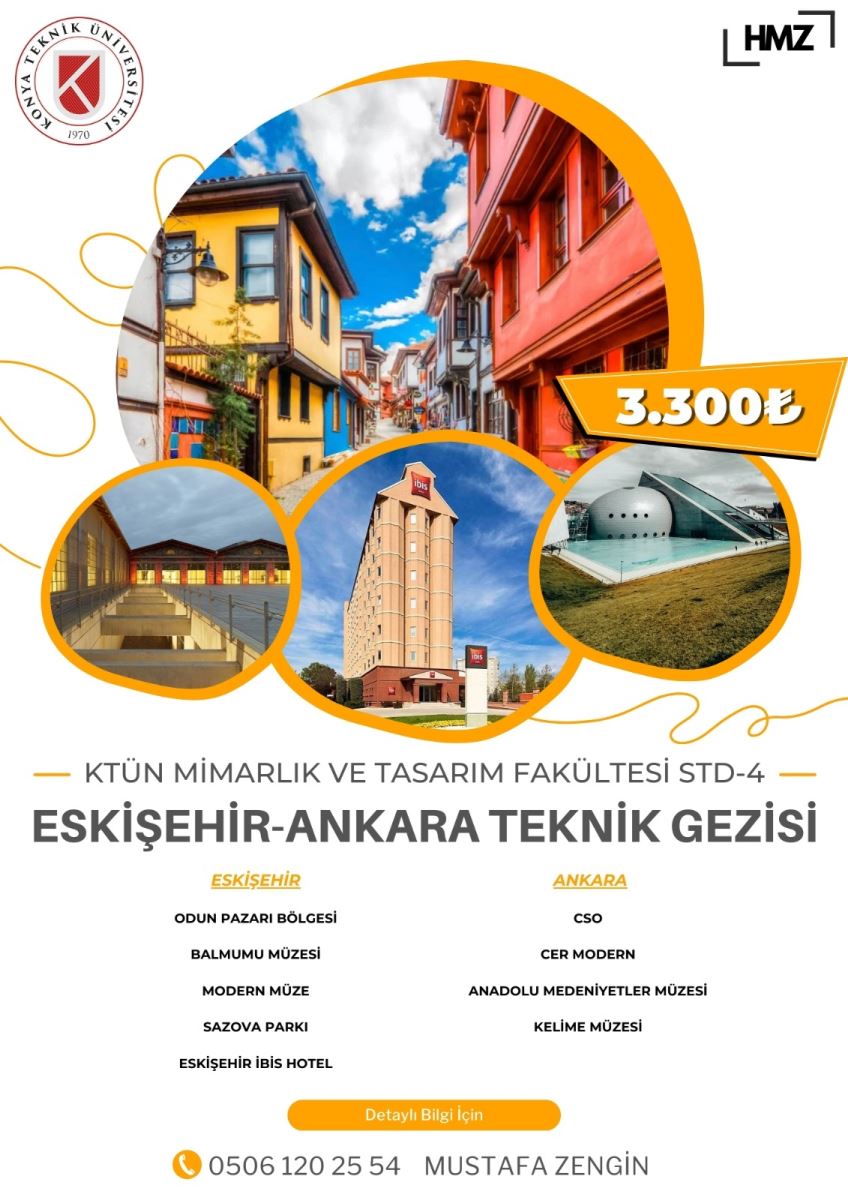 Stüdyo 4 dersi kapsamında 22-23.02.2025 tarihleri arasında Ankara ve Eskişehir'e teknik gezi düzenlencektir. KTÜN Mimarlık