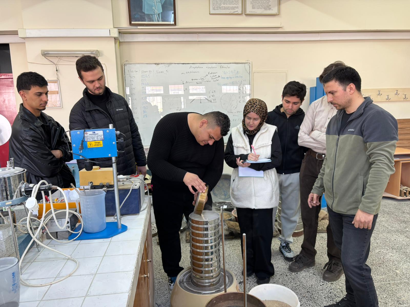 Gerçekleştirilen deney çalışmasıyla öğrenciler, zemin mekaniğinin temel deneylerinden biri olan elek analizi yöntemini uygulamalı olarak öğrenme fırsatı bulmuştur. Deney kapsamında zemin numuneleri belirli standart eleklerden geçirilerek tane boyutu dağılımı belirlenmiş, elde edilen veriler üzerinden zeminin granülometrik özellikleri değerlendirilmiştir. Böylece öğrenciler, zeminin mühendislik özelliklerinin belirlenmesinde tane dağılımının önemini deneysel olarak gözlemleme imkânı elde etmiştir.