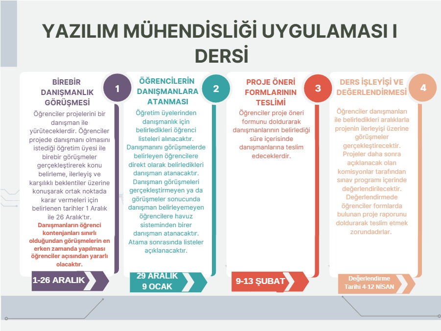 Yazılım Mühendisliği Uygulaması I ve II dersleri için uygulanacak puanlama ve kurallar ile ilgili bilgi için tıklayınız.