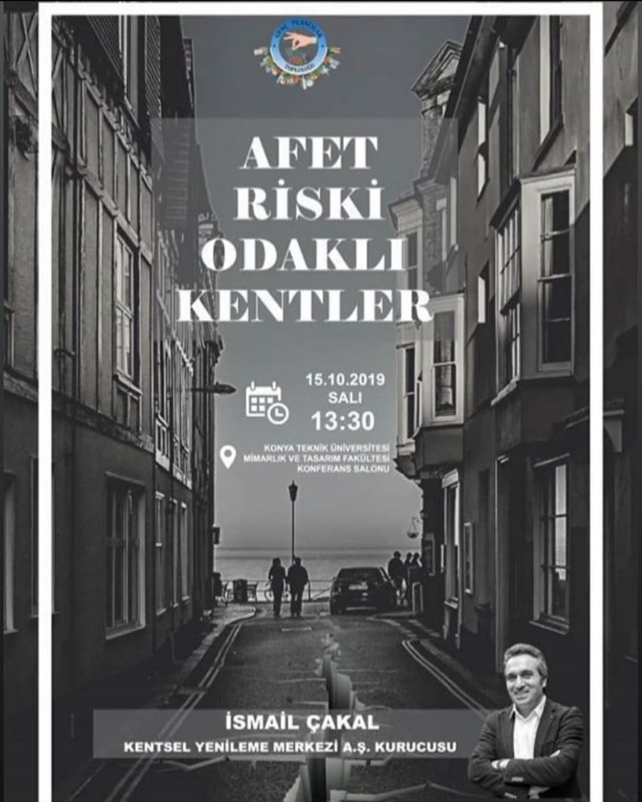 Kentsel Yenileme Merkezi A.Ş. kurucusu İsmail Çakal'ın Afet Riski Odaklı Kentler isimli sunuşu 15.10.2019 tarihinde Konya Teknik Üniversitesi Mimarlık ve Tasarım Fakültesi Konferans salonunda gerçekleştirilecektir.