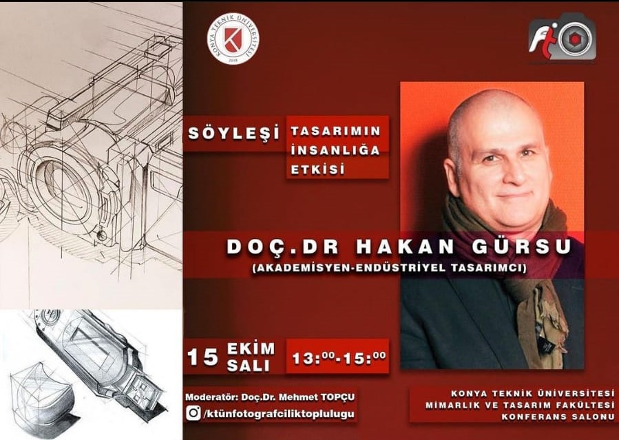 Tasarımın İnsanlığa Etkisi konulu söyleşi Endüstriyel Tasarımcı Doç. Dr. Hakan Gürsu tarafından 15.10.2019 tarihinde Konya Teknik Üniversitesi Mimarlık ve Tasarım Fakültesi Konferans salonunda gerçekleştirilecektir.