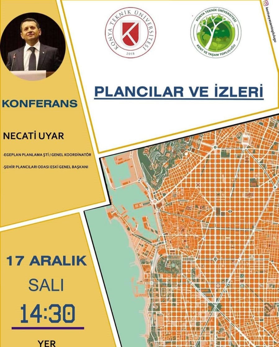 Plancılar ve İzleri konulu söyleşi Şehir Plancısı Necati Uyar tarafından 17.12.2019 tarihinde Konya Teknik Üniversitesi Mimarlık ve Tasarım Fakültesi Konferans salonunda gerçekleştirilecektir.