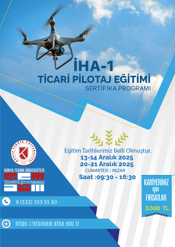 İHA-1 Ticari Pilotaj Eğitimi Sertifika Programı 13-14 Aralık 2025 & 20-21 Aralık 2025 (Cumartesi-Pazar) tarihlerinde Hafta sonu Grubu Eğitimlerimiz açılacaktır.
